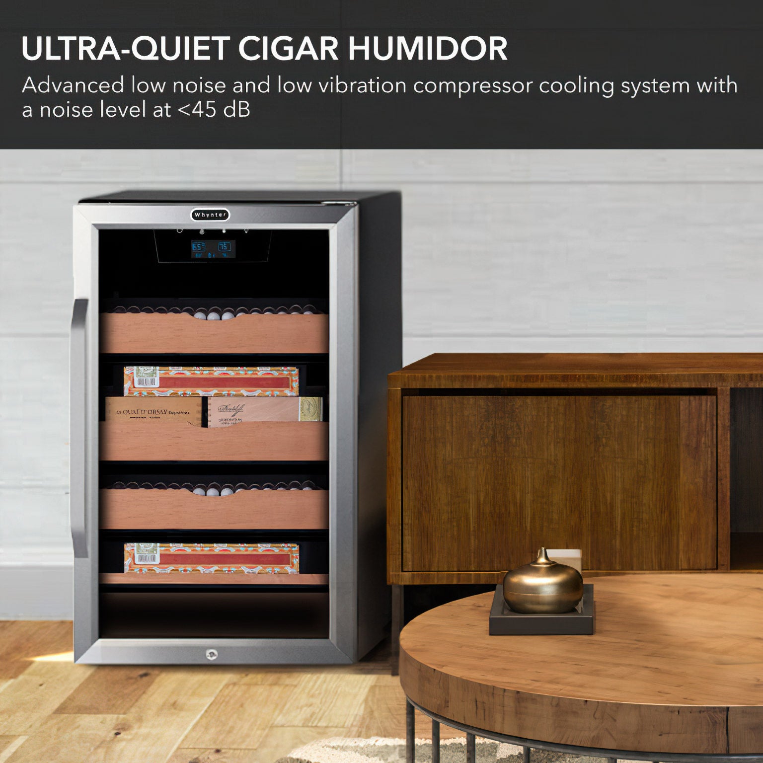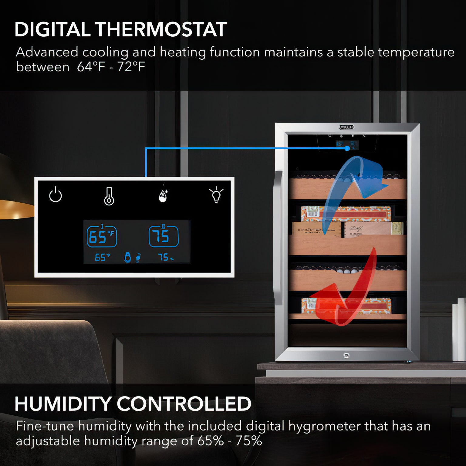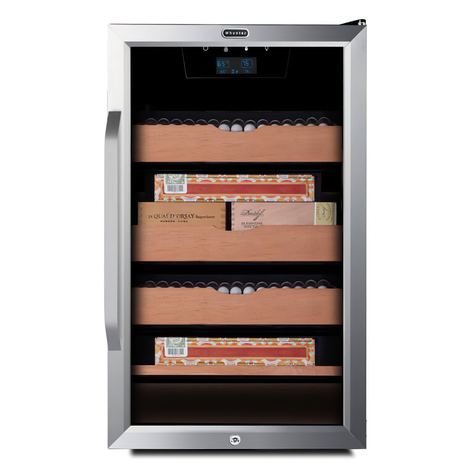 The Whynter CHC-421HC is a precise and stylish electric humidor built to protect and display your cigar collection with ease. With digital controls for both humidity and temperature, it offers consistent storage conditions in a sleek, compact cabinet.